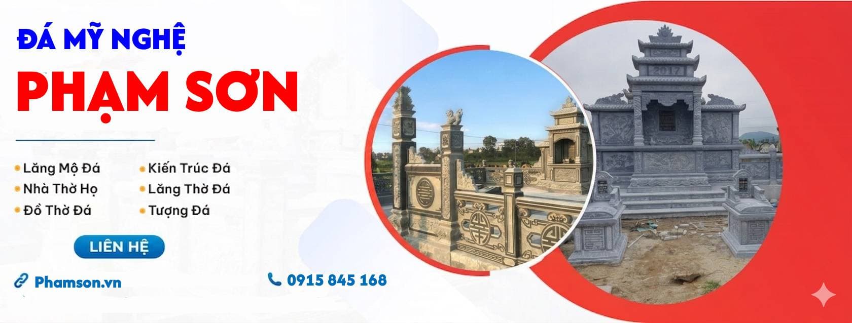 Chúng tôi cung cấp đa dạng hạng mục như lăng mộ đá, mộ đá, cổng đá, lan can đá, cuốn thư đá, tượng đá, linh vật đá, lư hương đá, đá lát nền và nhà thờ họ, đáp ứng đầy đủ nhu cầu tâm linh và kiến trúc.