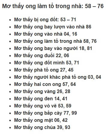 - Mơ thấy con ong: 16 – 56 – 96