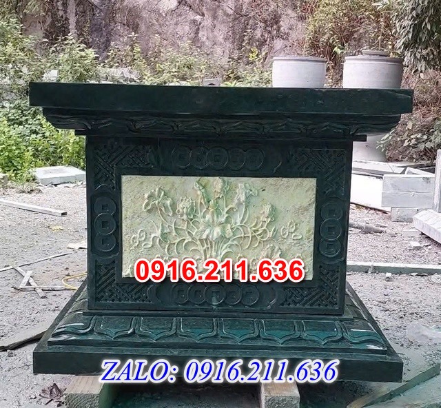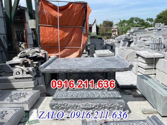 Đá xanh đen là loại đá tự nhiên có màu sắc trầm, bề mặt mịn, và độ cứng cao, phù hợp để chế tác bàn lễ đá ngoài trời. Đá xanh đen mang vẻ đẹp giản dị nhưng sang trọng, phù hợp với các không gian thờ cúng trang nghiêm.