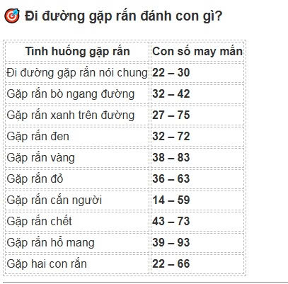 | Gặp rắn bò ngang đường | 32 – 42 |