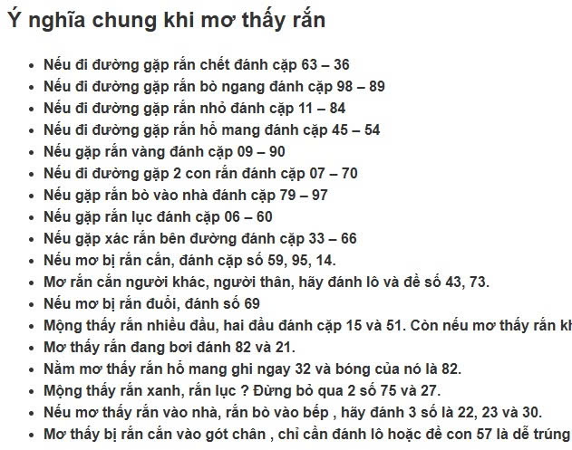 - Nếu mơ bị rắn cắn, đánh cặp số 59, 95, 14.