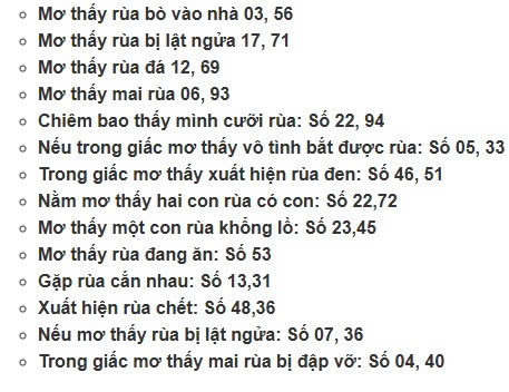- Nếu mơ thấy rùa bị lật ngửa: Số 07, 36