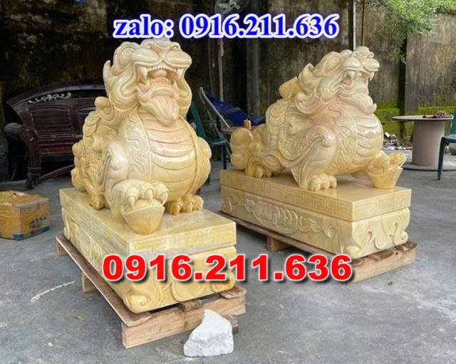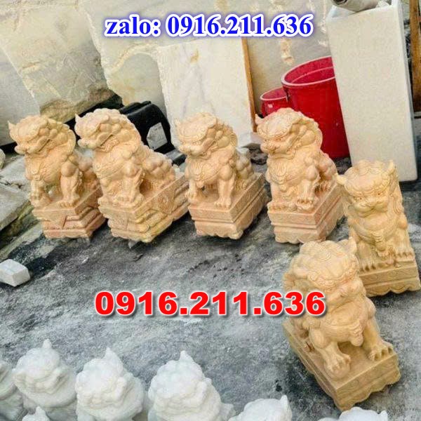 - Cặp Sư tử cao 20cm: đá Cẩm thạch giá khoảng 1 – 1,5 triệu/ cặp; đá ngọc bán quý từ 2,2 – 3,5 triệu/ cặp;