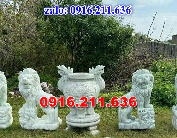 - Cặp Sư tử cao 25cm: đá Cẩm thạch giá khoảng 1,5 – 2 triệu/ cặp; đá ngọc bán quý từ 4 – 6 triệu/ cặp;